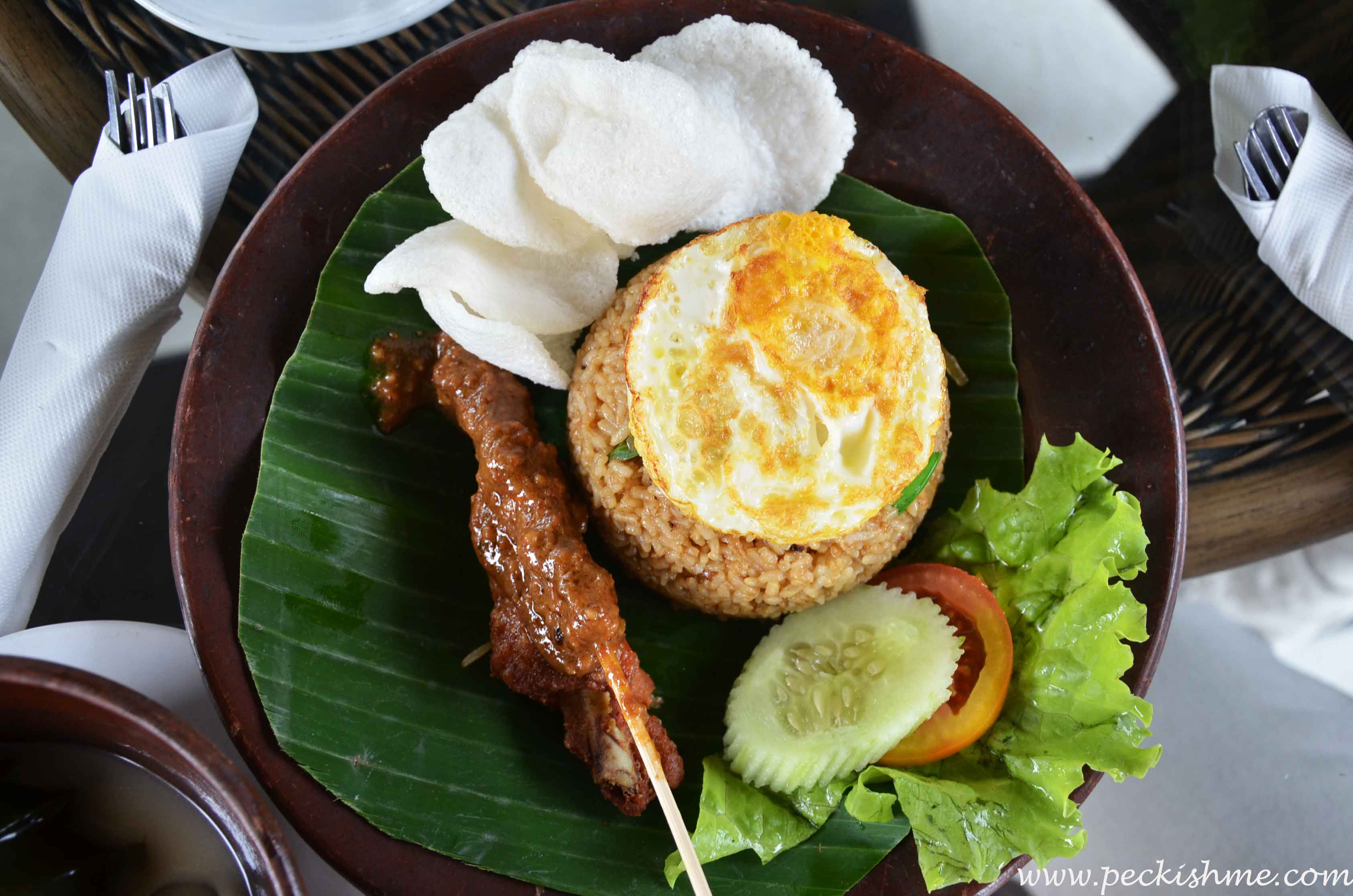 We tried two Nasis while we were there and both were not consistent. One simply had some fried rice topped with an egg, satay missing and the other was the complete deal with a mound of fried rice topped with an egg, chicken satay on peanut sauce and prawn crackers. You generally have a choice between chicken or vegetable nasi which are the most common options. We took chicken the both times and did not come across any seafood Nasi Goreng while we were there. The rice isn’t spicy, it is simply stir fried with what I assume is some sort of shrimp paste and in one, it wasn’t very flavourful at all. Unlike in Sri Lanka which makes the Nasi Goreng with a non sticky rice, the Nasi we came across were made with a sticky rice which made it sort of clumpy. The chicken satay were soft and flavourful with the peanut sauce being best part with its sweet, nutty, tangy taste. The soft egg yolk complements the flavorsome rice, further highlighting its various nuances. The prawn crackers are sometimes in presence, sometimes not. You really cannot depend on it.