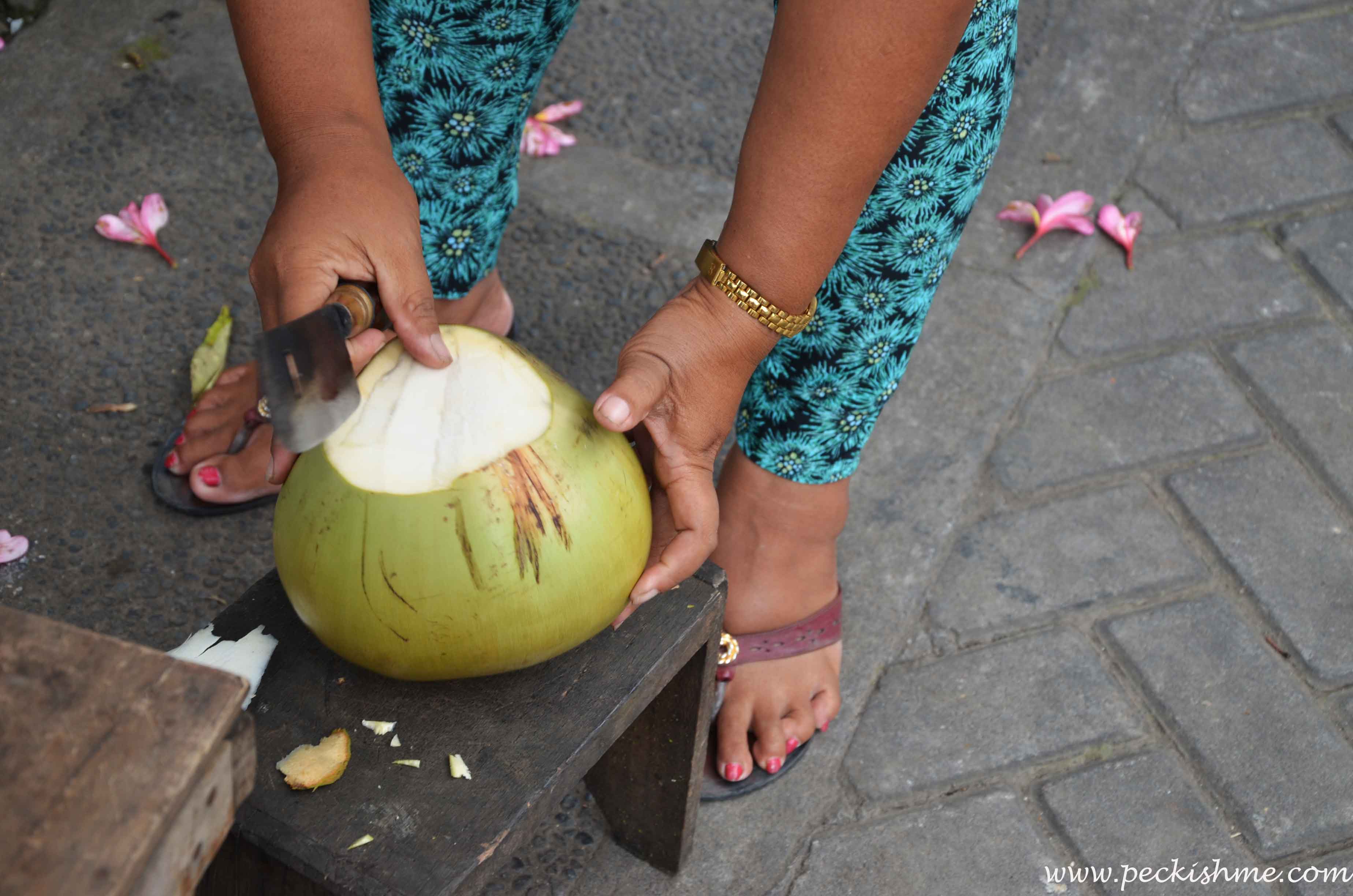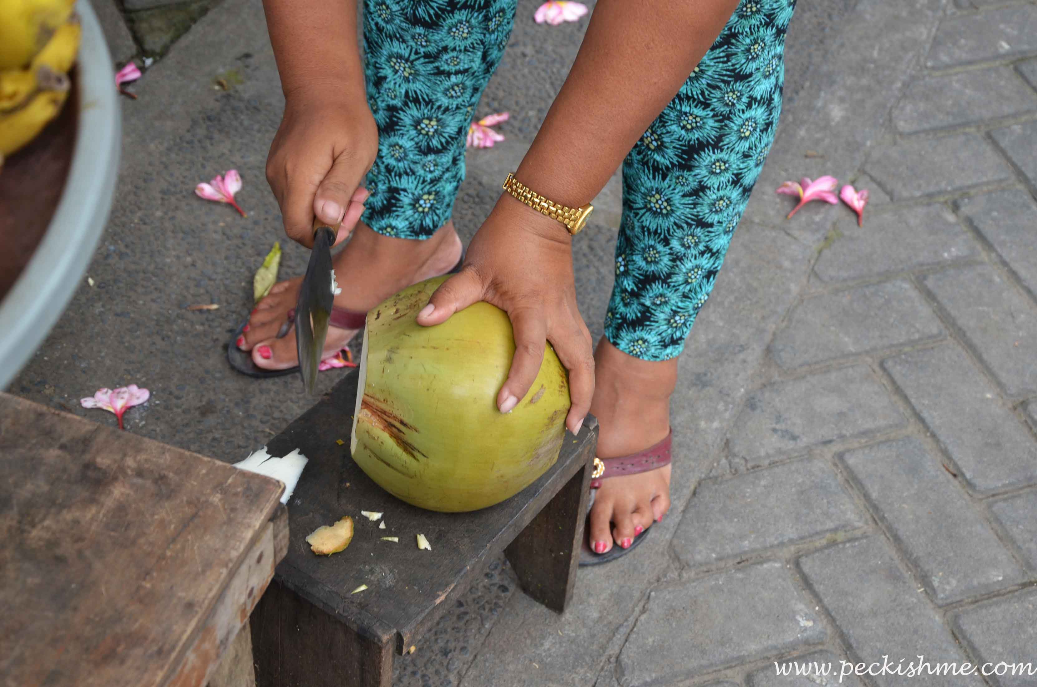 This we found to be common to both Sri Lanka and Bali as being islands, coconuts grow in plenty. The tender young coconut is husked from the stem and pierced with a knife through which you can insert a straw and drink to your heart content. The water is sweet and cool and is the perfect respite from the tropical heat that tends to get to you as you go about sightseeing or shopping on this beautiful island.