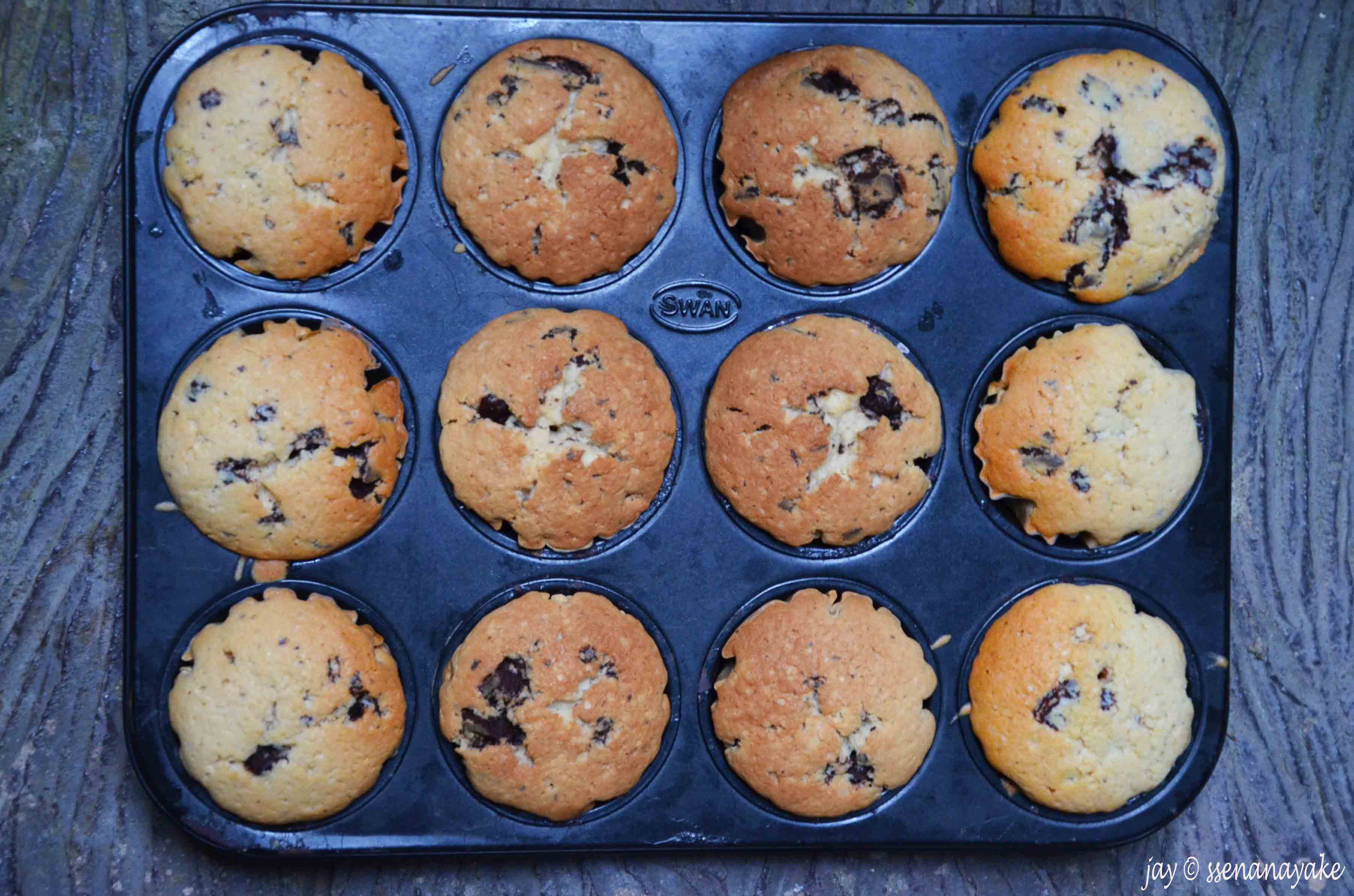 Vanilla-choc chip muffins