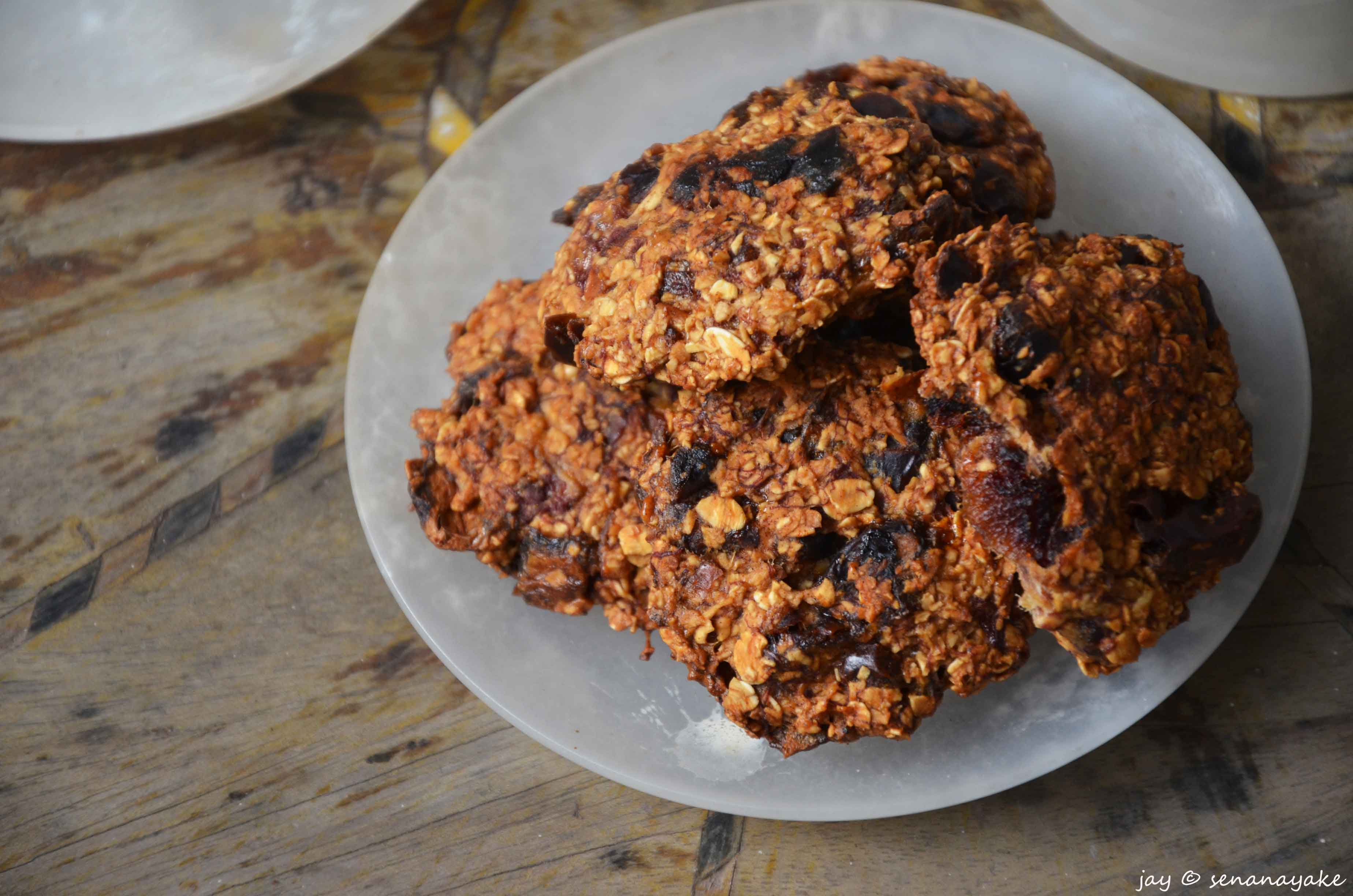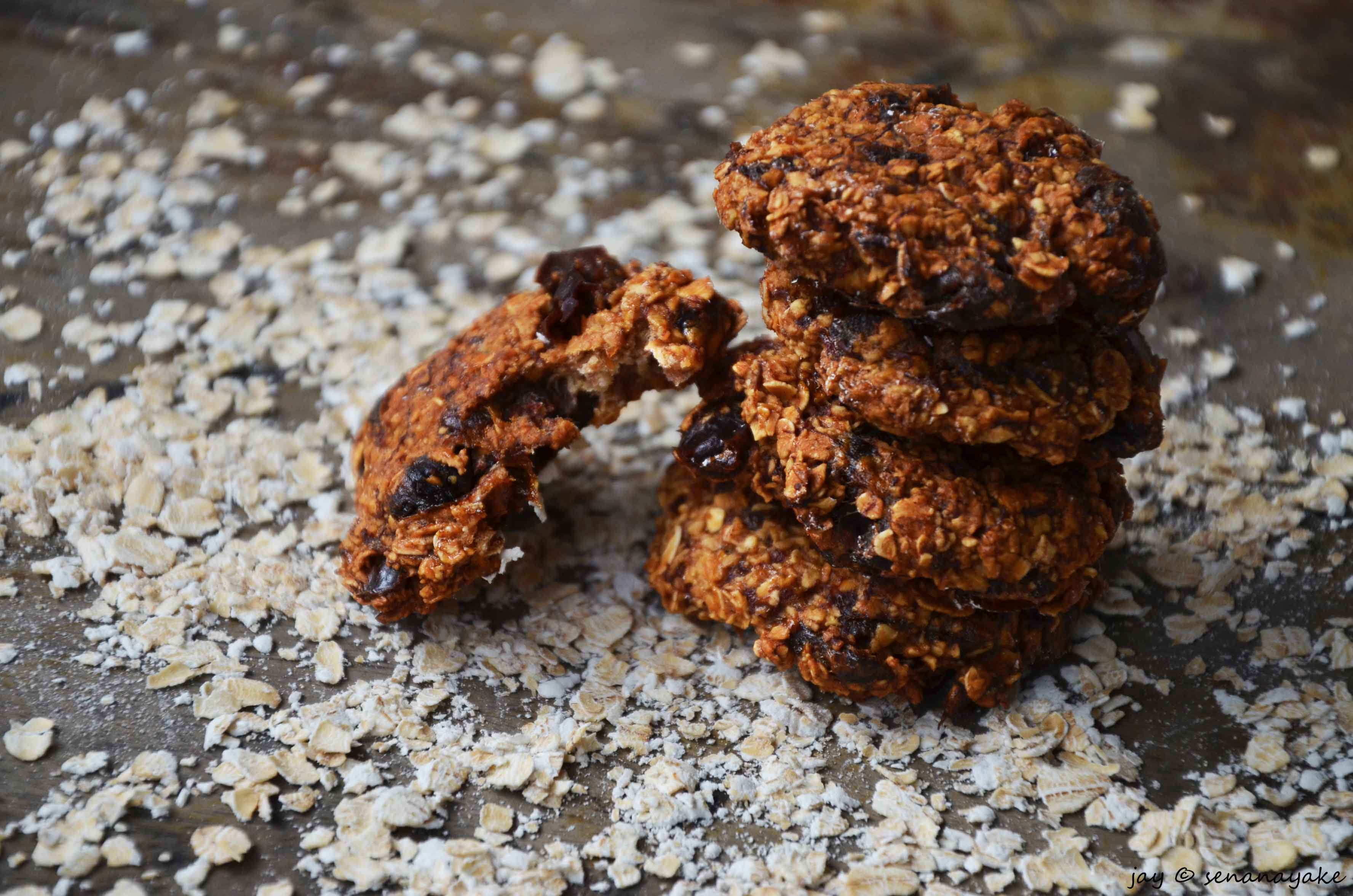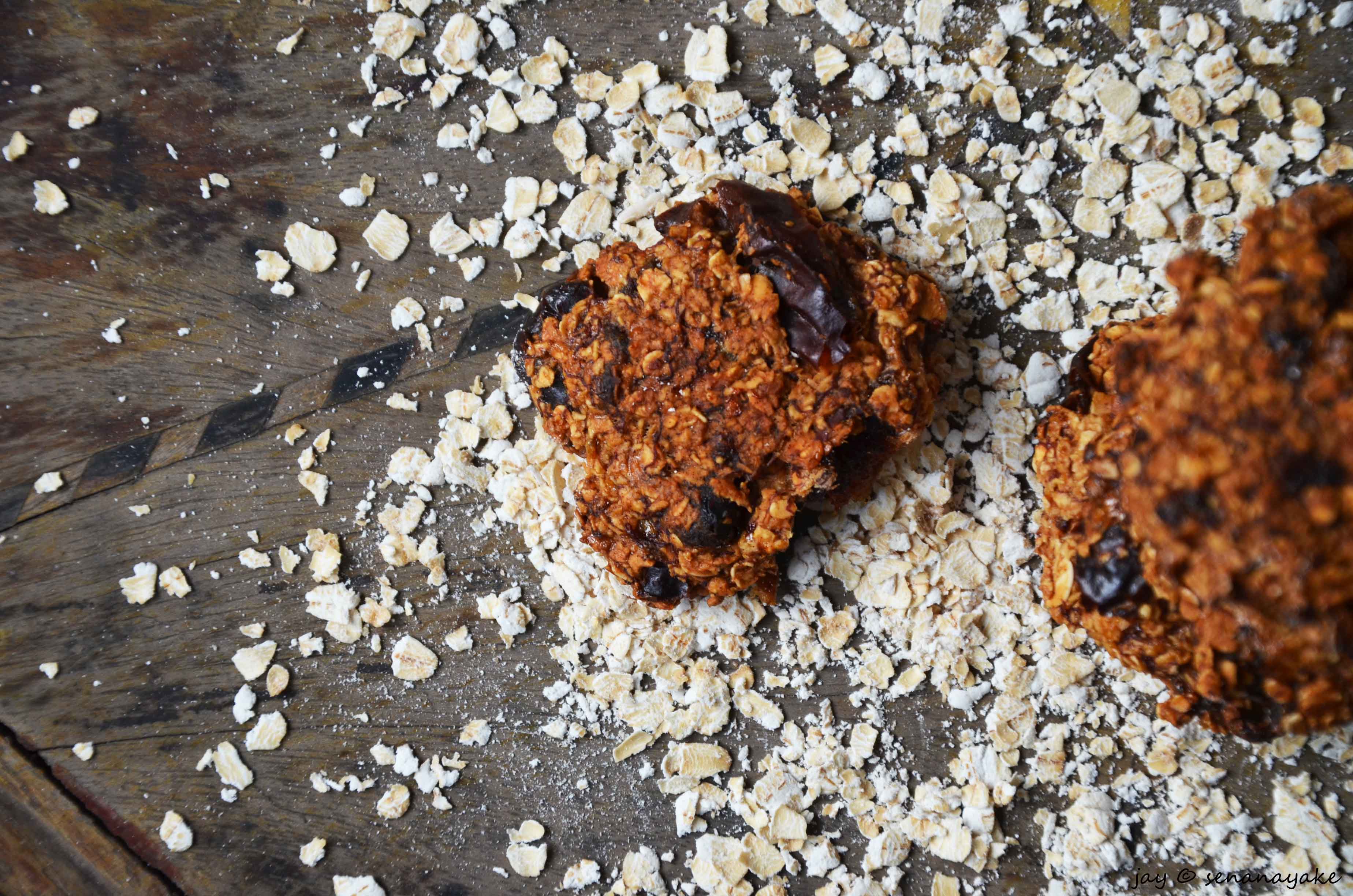 With so much of junk food around playing the devil with our senses with temptation, it’s takes an extra effort to stay healthy these days. Although trying to stick to a healthy diet, the occasional slice (or half the entire thing) of pizza, a stray hamburger, various pastries and Chinese rolls wander their way towards my mouth occasionally (well more than just occasionally *blush*). It’s even worse at home. It’s just scandalous how all kinds of cookies, murukku, sweets and fried stuff and constantly munched! Although often homemade, the amount of sugar, butter and oil in these things always worried me. So this was a humble attempt on my part to create something that doesn’t make me regret eating it afterwards – healthy oatmeal cookies. To be quite honest I wasn’t quite sure how this would turn out – but what I churned out was pretty darn amazing, if I may say so myself.